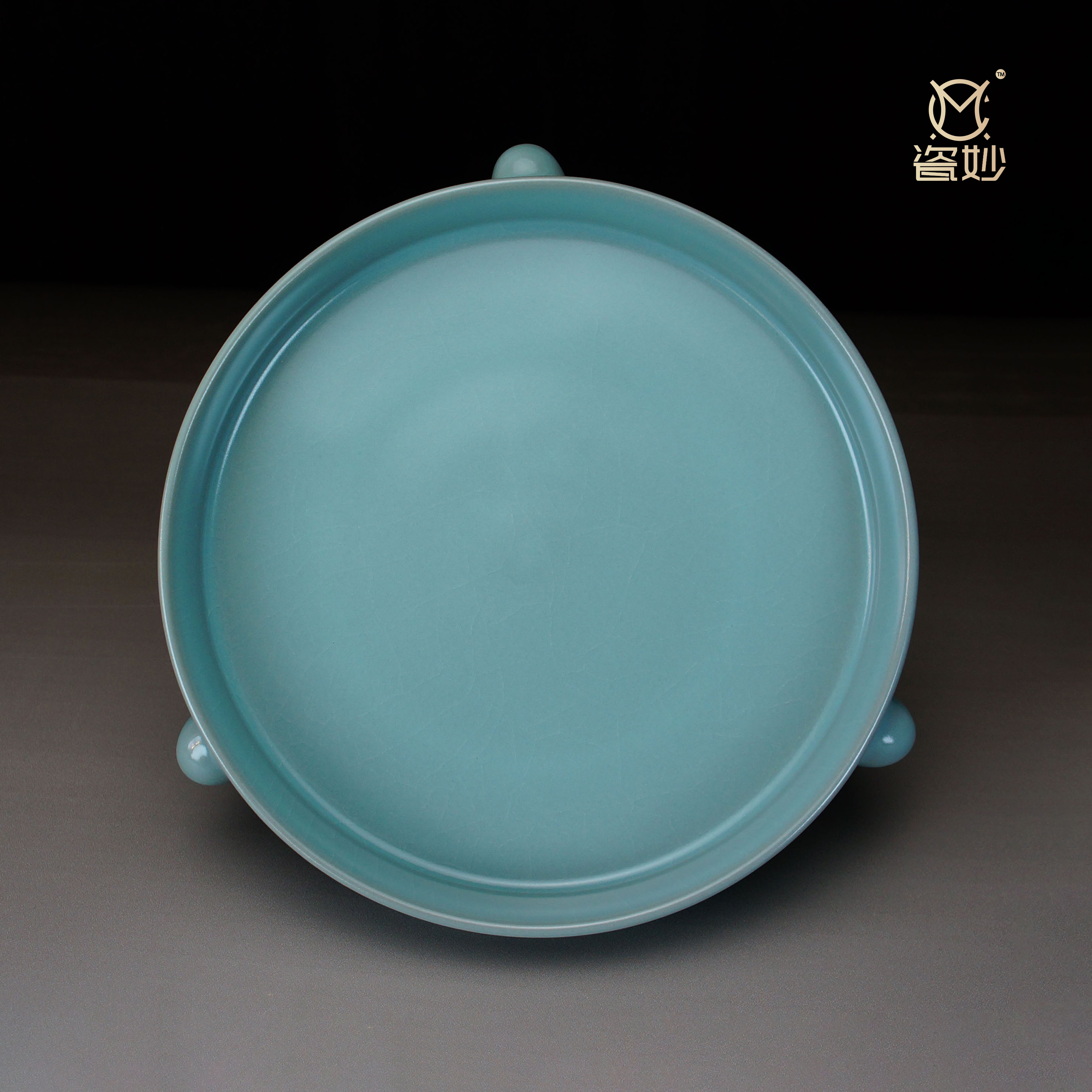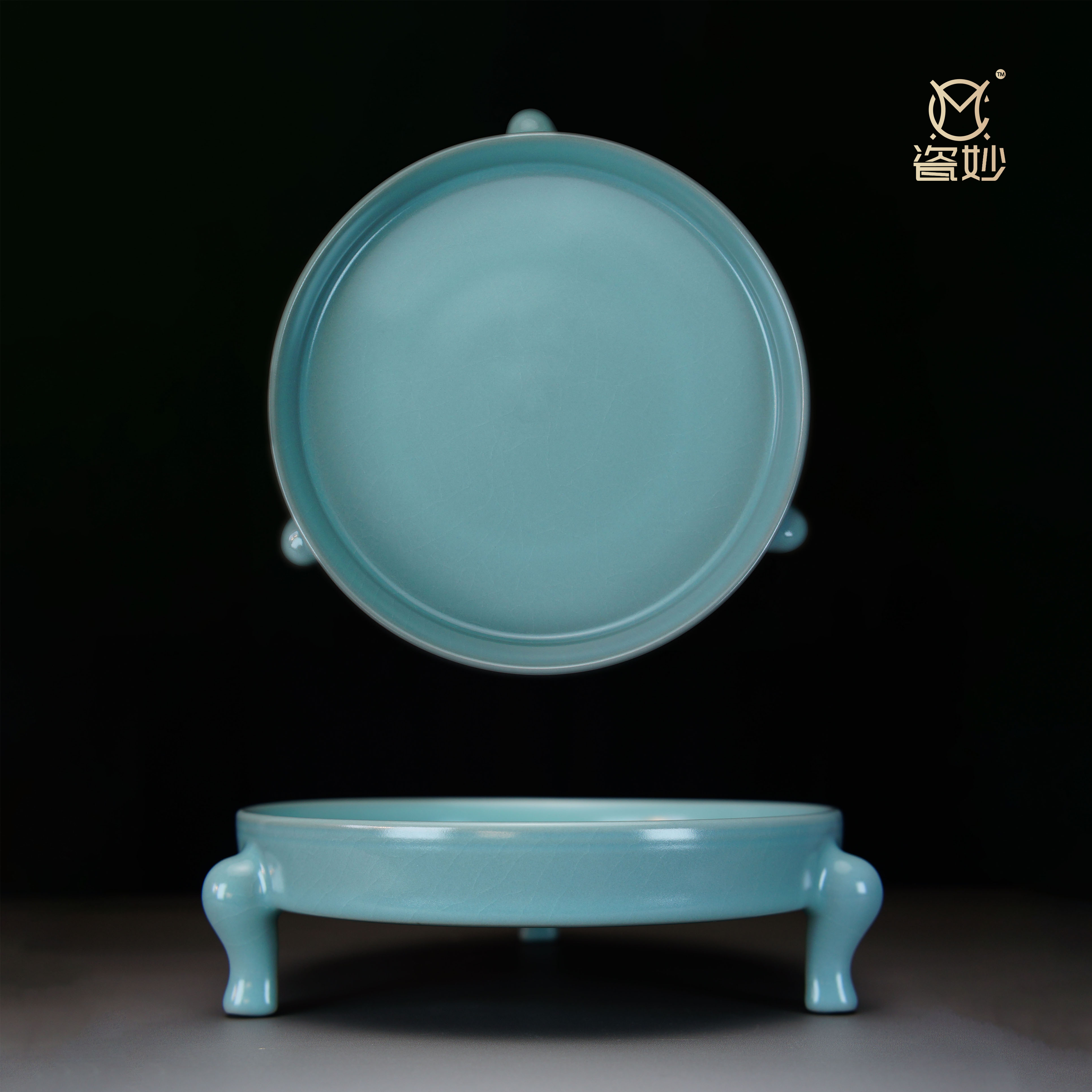 汝瓷三足樽承盘是中国宋代汝窑烧制的一种经典瓷器,具有极高的艺术价值和历史意义。其造型典雅,工艺精湛,体现了宋代瓷器制作的巅峰水平。