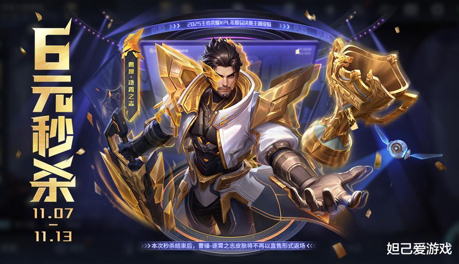 本周六,2025KPL年度总决赛-决赛开赛,为纪念本次总决赛,KPL官方特地推出限定皮肤——曹操【逐霄之志】,从官方给出的宣传视频来看,这款皮肤的特效很不错,风格与之前的KPL限定——关羽【决胜晓骑】有点相似,且惊喜的地方在于,曹操总决赛限定皮肤仅售60点券。
