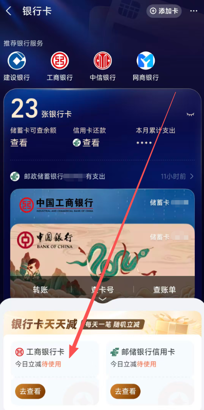 这个活动是各大银行不定期开展的,之前最多有过四五个银行同时开展的,活动需要大家在支付宝里搜索银行卡进入活动页面报名才能参与,不报名时没有立减的。