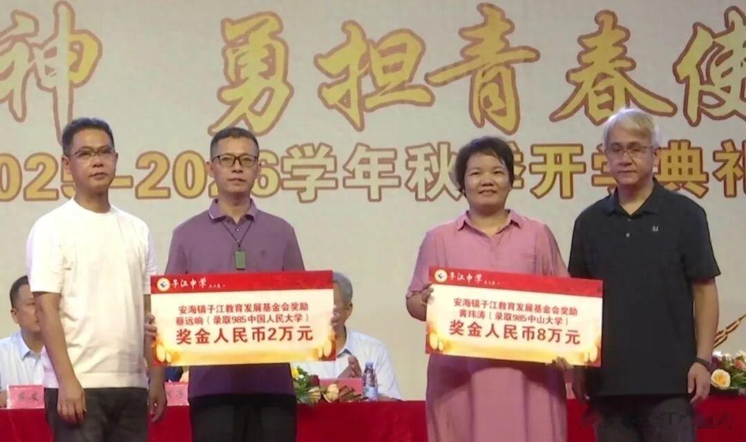 典礼上举行了安海镇子江教育发展基金会奖教奖学颁奖仪式,201名在上一年度表现优异的各级学生获得了相应的奖学金奖励,奖励资金共计416.115 万元。