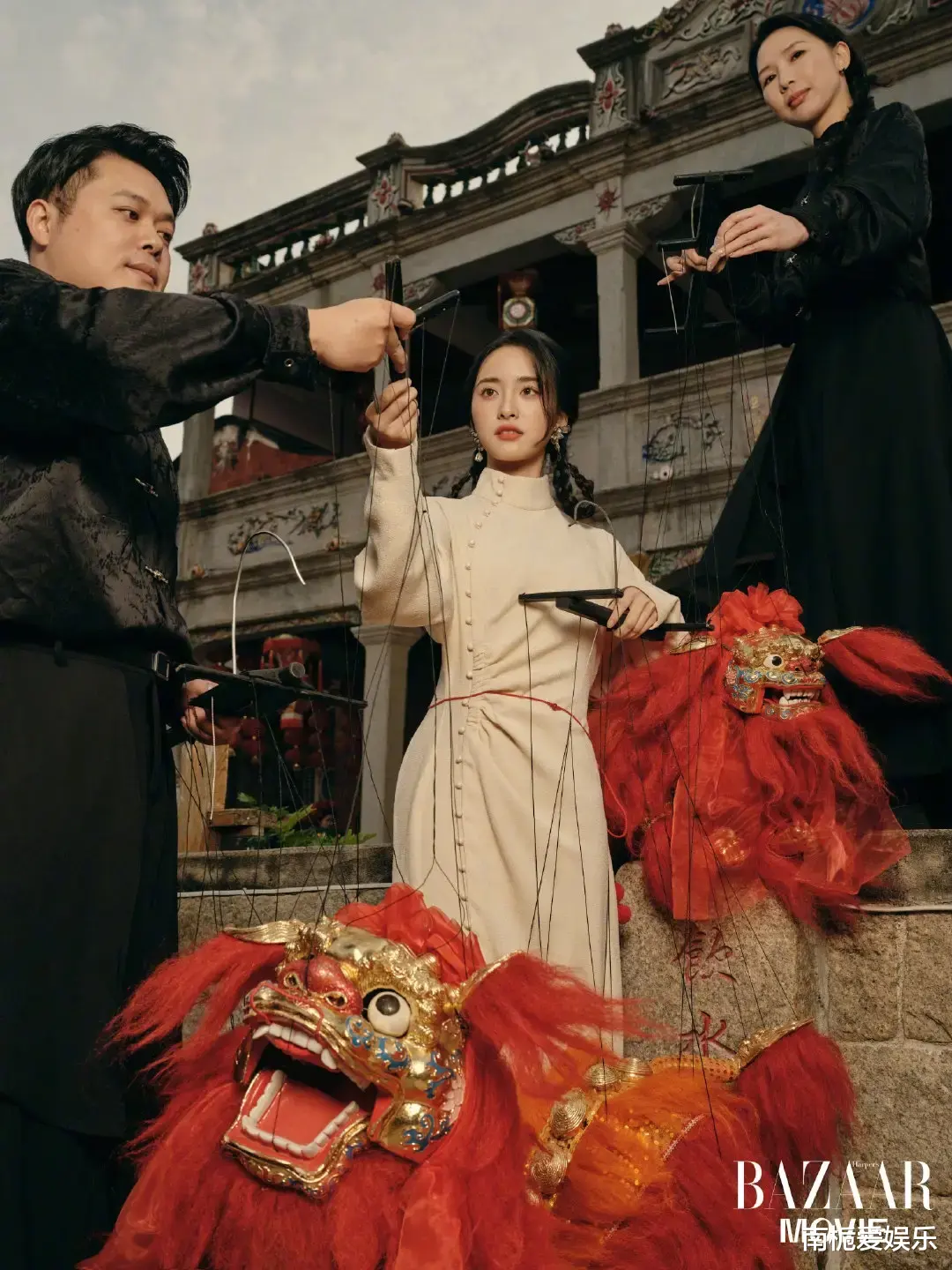 从结果来看,这次拍摄是相当成功的。沈月不仅打破了大众对她“小甜妹”的固有印象,更展现了自己驾驭多元风格的能力。她没有被民俗符号“穿戴”,而是用自己的方式去“演绎”文化,这种真诚且富有思考的表达,让这组大片美得高级,美得有底蕴。