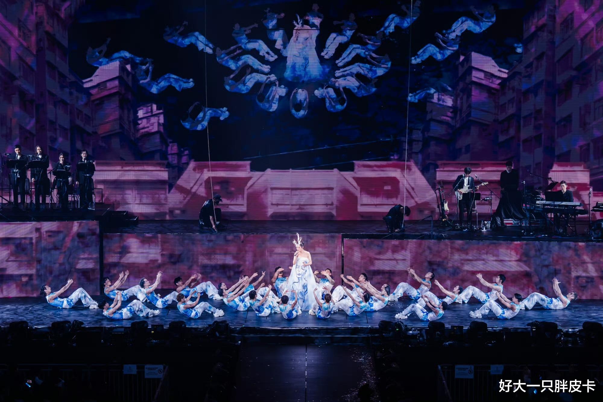 而后进入的第四章「北冰洋 CAST AWAY」,是整个演出各个部分中最为艺术性和探索性的集锦。不仅仅是选曲和编曲,包括舞美、视觉、服装、情绪等都是那道最为上乘的私房菜,它拿出了香港制作的最高水准。