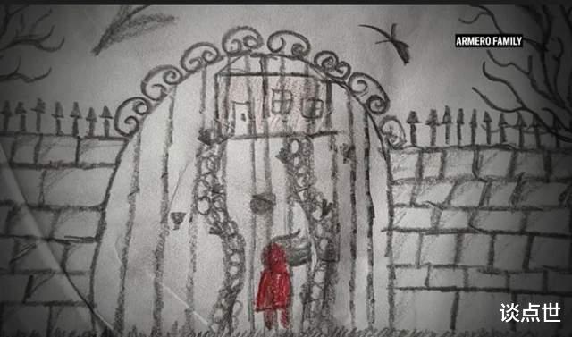 在迪利拘留中心,这名女孩靠画画平复情绪,画出了一幅幅令人揪心的作品:一个女孩被囚禁在铁门之内(At Dilley, the 13-year-old calmed herself by drawing, producing haunting pictures of a girl locked inside gates)。