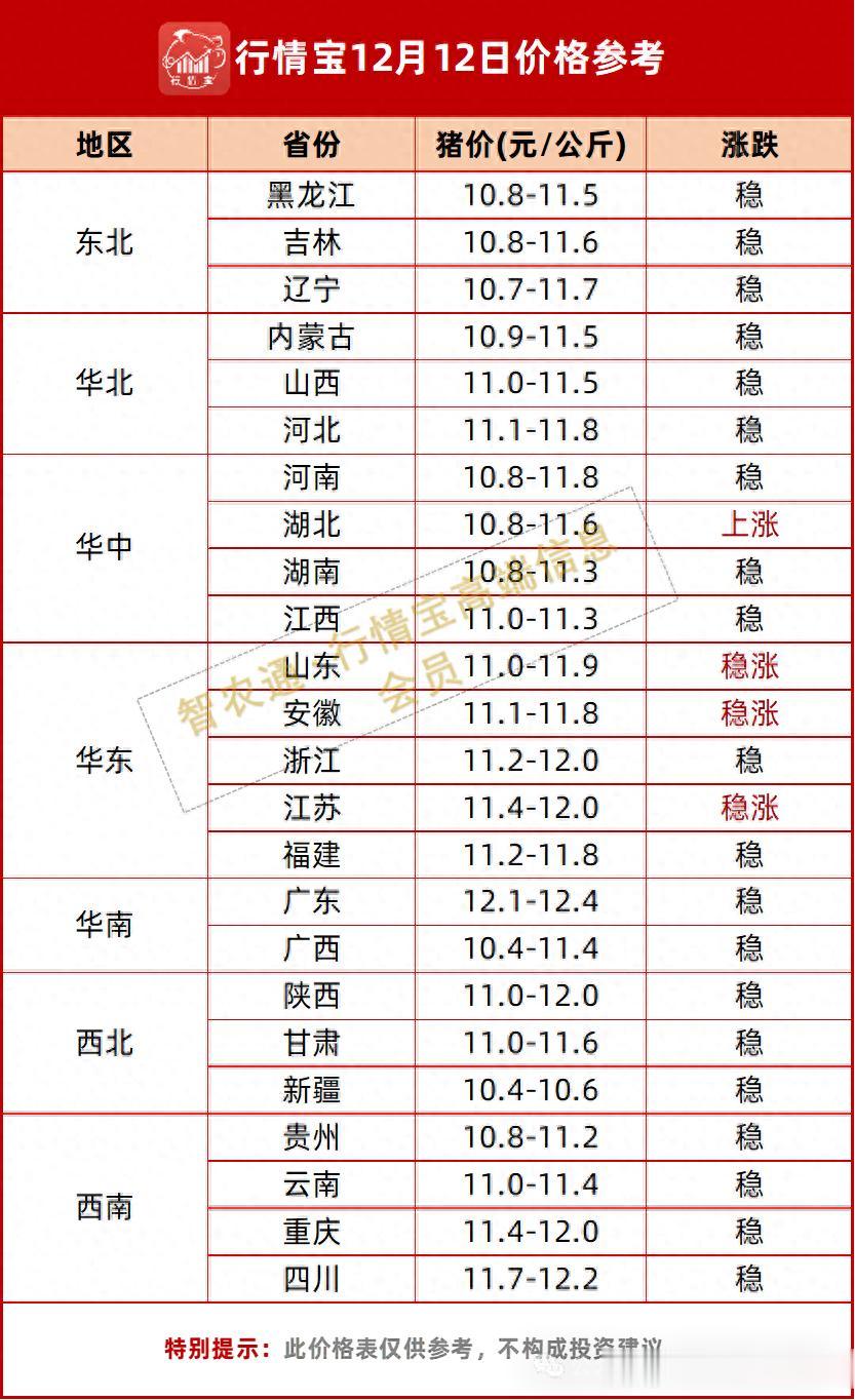 展望后市,短期内猪价维持窄幅震荡。春节前供应压力存在,但北方及西南屠宰量有望持续增长,支撑价格。明日全国猪价以稳中小涨为主,北方产区因备货需求延续微涨,南方销区受消费疲软影响,价格有回调可能。