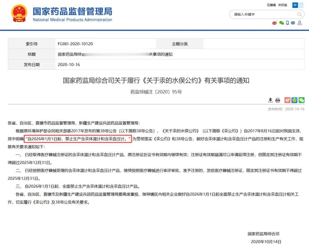 其实国家药监局,早在 2020 年就已经通知过了。2026 年 1 月 1 日起,禁止生产含汞体温计和含汞血压计产品。