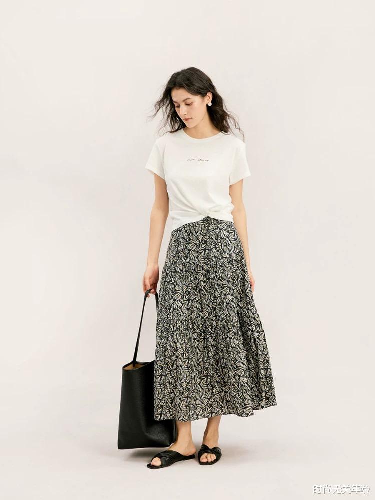 比如这款黑白印花的半裙,就非常容易打造出经典又时髦的造型。黑白的对比鲜明却不突兀,印花的设计既不会过于夸张,又能为整体增添一丝艺术感。无论是日常通勤还是周末约会,都能轻松驾驭。 此外,这款半裙的长度恰到好处,既能修饰腿型,又不会显得过于保守。微微的A字版型让它对身材的包容性极强,无论是梨形身材还是苹果型身材,都能穿出属于自己的独特风格。