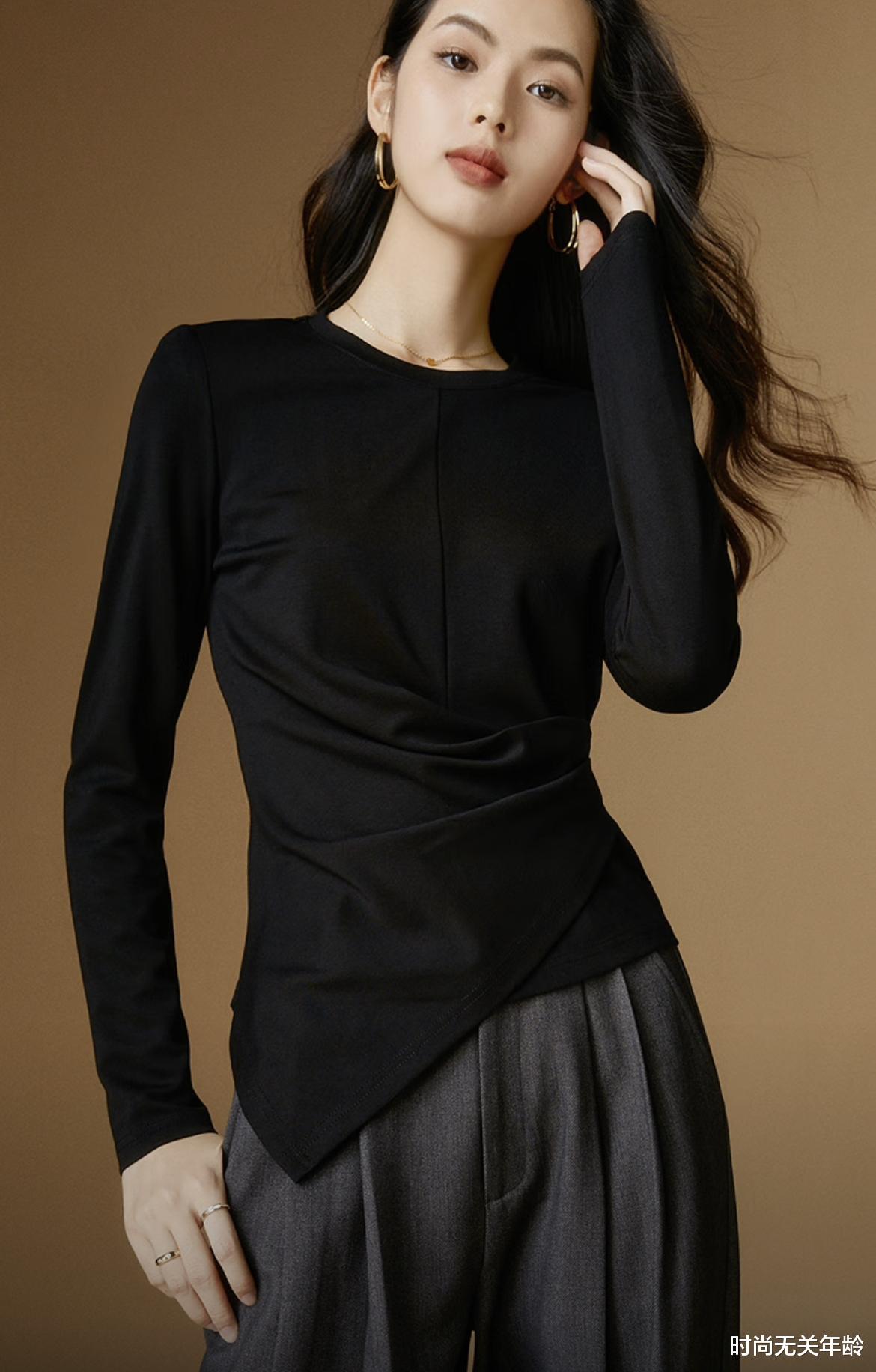 纯色的打底衫是秋季叠穿的必备款!