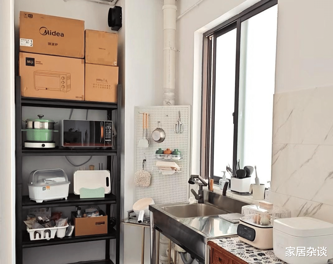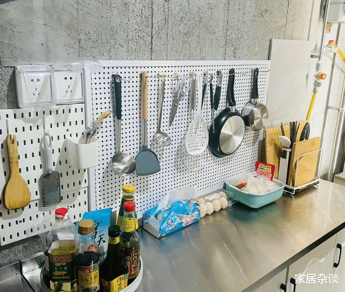 而厨房墙面,都是闺蜜自己买的珐琅板,直接贴在墙面上。