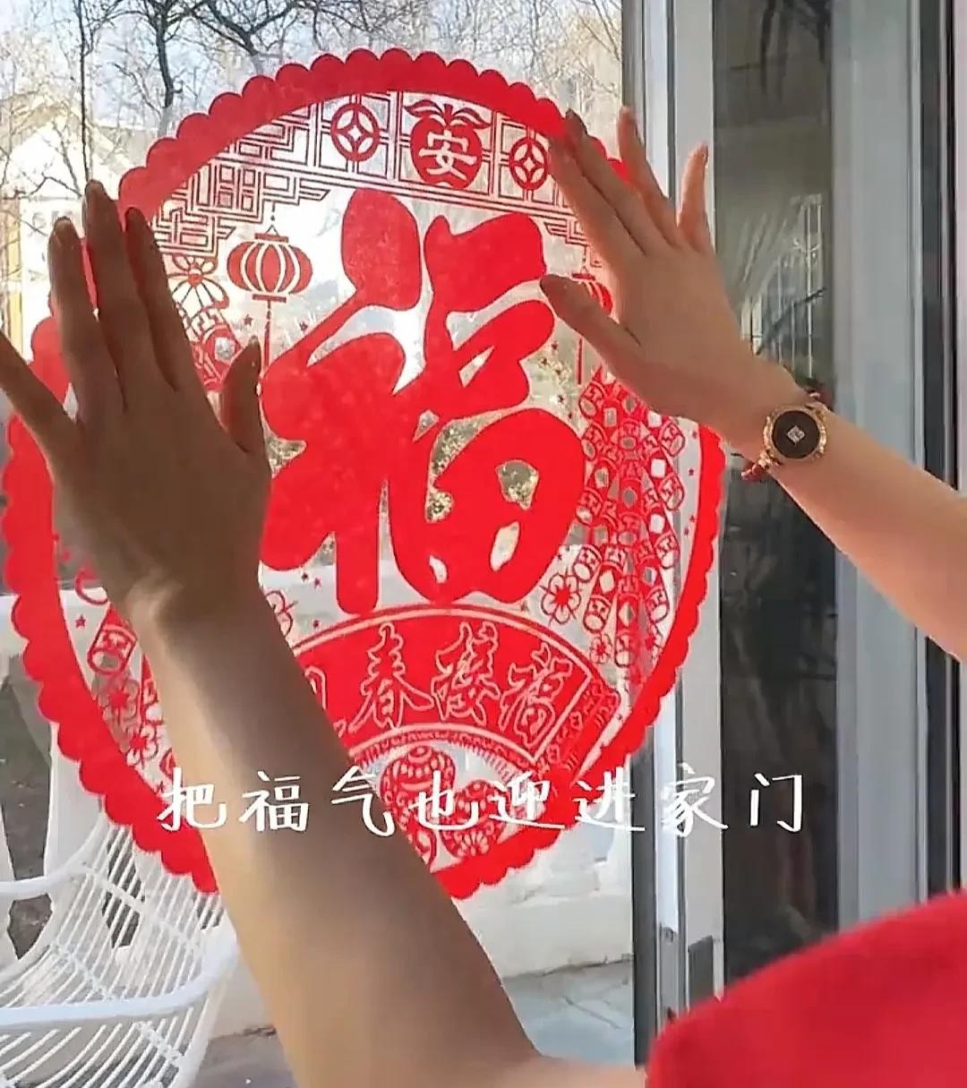 再看看她贴福字的样子,站在窗户前,回眸一笑百媚生,妥妥的功夫女郎既视感!这颜值,真是经得住时间的考验啊!而且,她还穿着大红色的旗袍,身材那叫一个曼妙!肚子上虽然有点肉肉,但完全不影响整体美感!四十多岁能保持这样,简直是逆生长啊!这要是换成我,估计得做梦都笑醒吧!