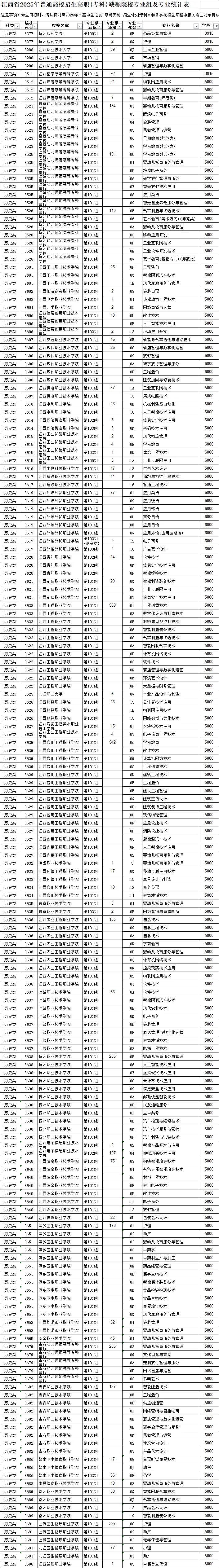 2025江西省内公办大专高职院校补录计划汇总(历史类)!