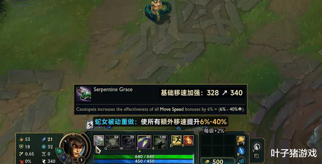 值得一提的是,蛇女是在2016年5月4日的6.9版本公告中宣布重做被动并且禁止购买鞋子,而新赛季预计在1月初上线,算起来也将近10年了。重做后的蛇女基础移速由原来328提升至340,所有额外移速效果将随等级提升(6%-40%),目前测试下来后期能达到恐怖的900移速。
