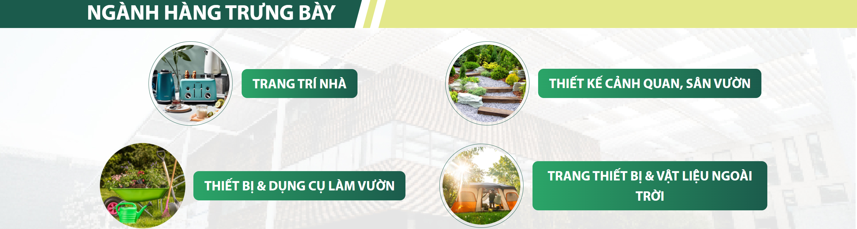 园林景观设施:自动灌溉系统、园林照明(草地灯、水下灯等)、喷泉设施、水过滤器、泵类产品、景观雕塑、绿墙、阳台及屋顶花园解决方案、户外休闲设施等。