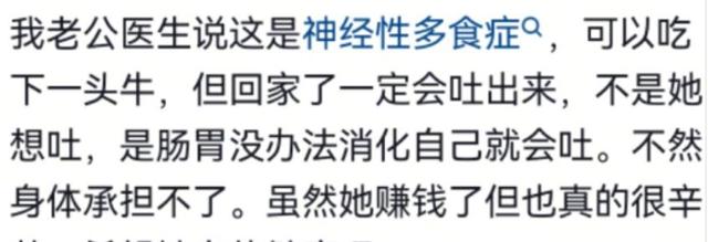 可时间长了后,吃播行业涌现出越来越多的网红,无论男女,他们的胃口大到能吃下一头牛,不过随之而来的,是“催吐”这种伤害身体的行为,变得越来越频繁。