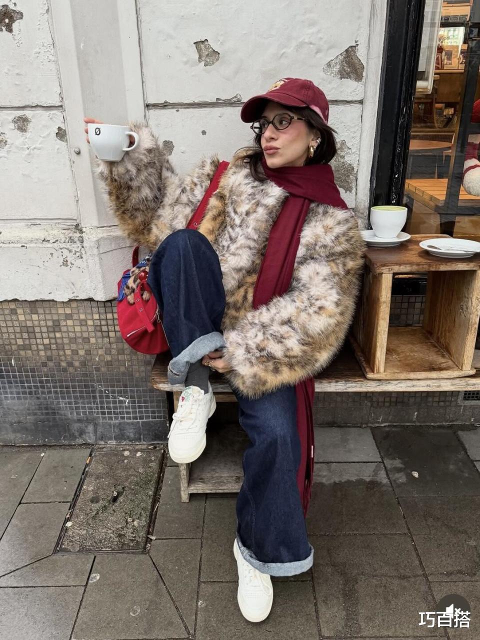 围巾帽子必不可少,包包选择手提款或手胯款效果最佳,为了避免臃肿,以无领款皮草为选择目标效果最佳,但如果大家手头没有合适的围巾,选择大翻领或者立领款为主效果最佳。