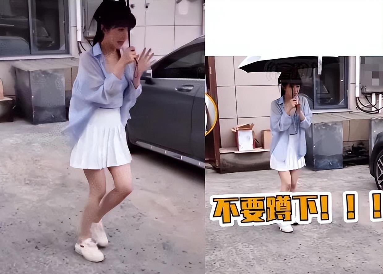 镜头呢,从远处慢慢靠近,而且是往下移的。最关键的是,那天她没穿安全裤。