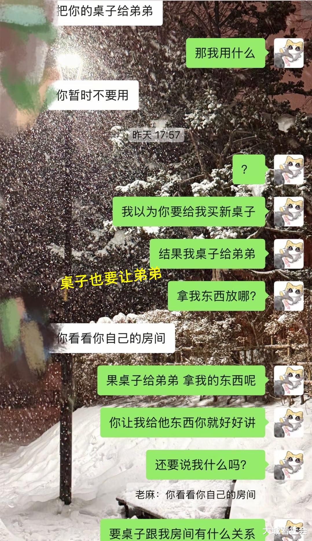 还有家里面用的东西,比如她房间里的桌子,弟弟缺桌子用,母亲就搬她用的。
