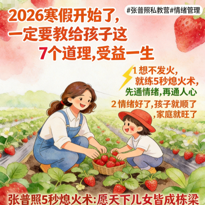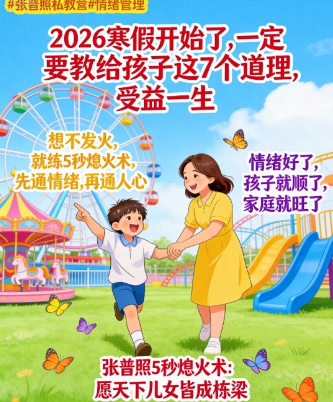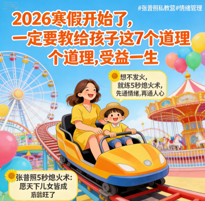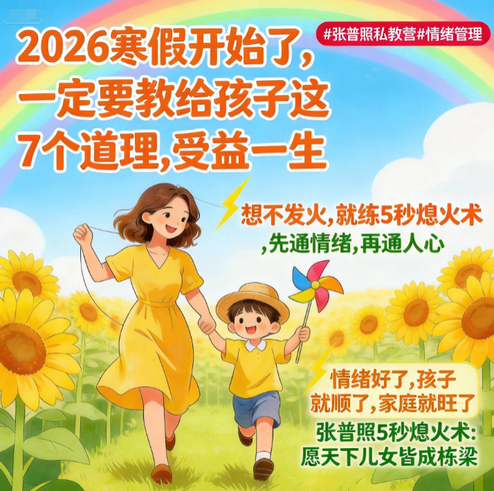 真正的“为他好”,不是你讲了多少金句,而是当你放下指责,伸出双手时,孩子愿意放下防备,向你靠近。学习掌握 “张普照5秒熄火术” 核心心法。从此,你不再是那个让孩子想逃离的“道理轰炸机”,也不是那个被假期琐事折磨得憔悴不堪的“焦虑管家”。