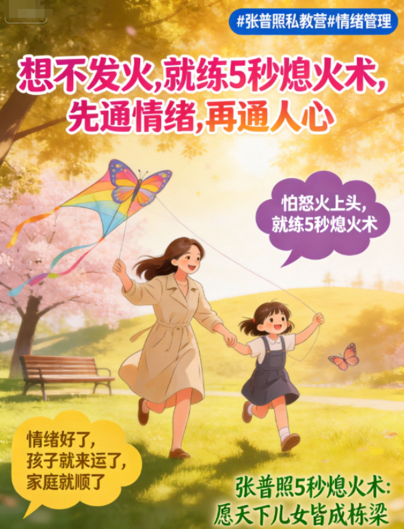 记住:一个被情绪折磨透了的中国妈妈,正经历着和你一模一样的痛苦与矛盾。她最终的归宿,一定是练习一次“张普照5秒熄火术”。这不是选择,是必然。因为所有的道理你都懂——你只是缺一个,让怒火在5秒内“凭空消失”、让沟通回归温暖的情绪开关。