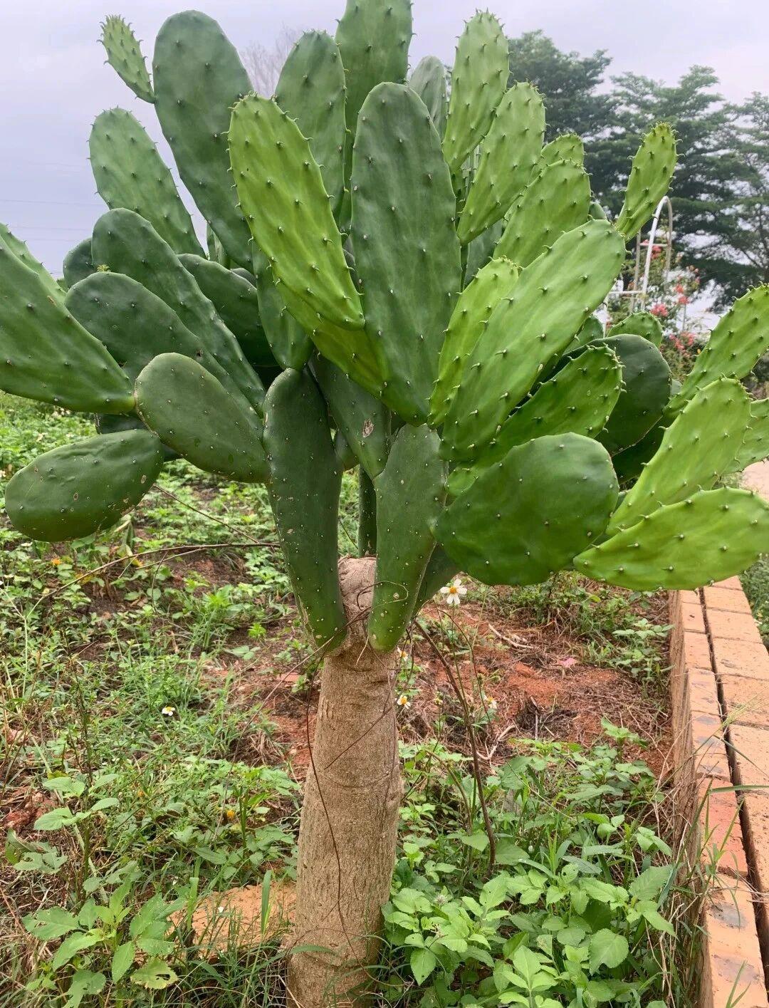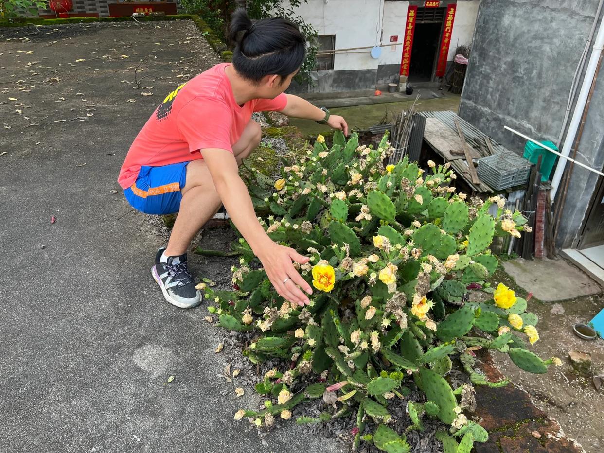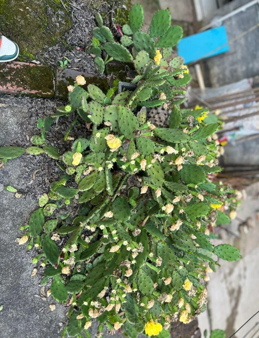 博主说,这一株仙人掌,打她记事起就有了,一开始种在花盆里,后来不知道谁给移到墙角,后面起风刮到后,家里人直接就将它改成地栽了。
