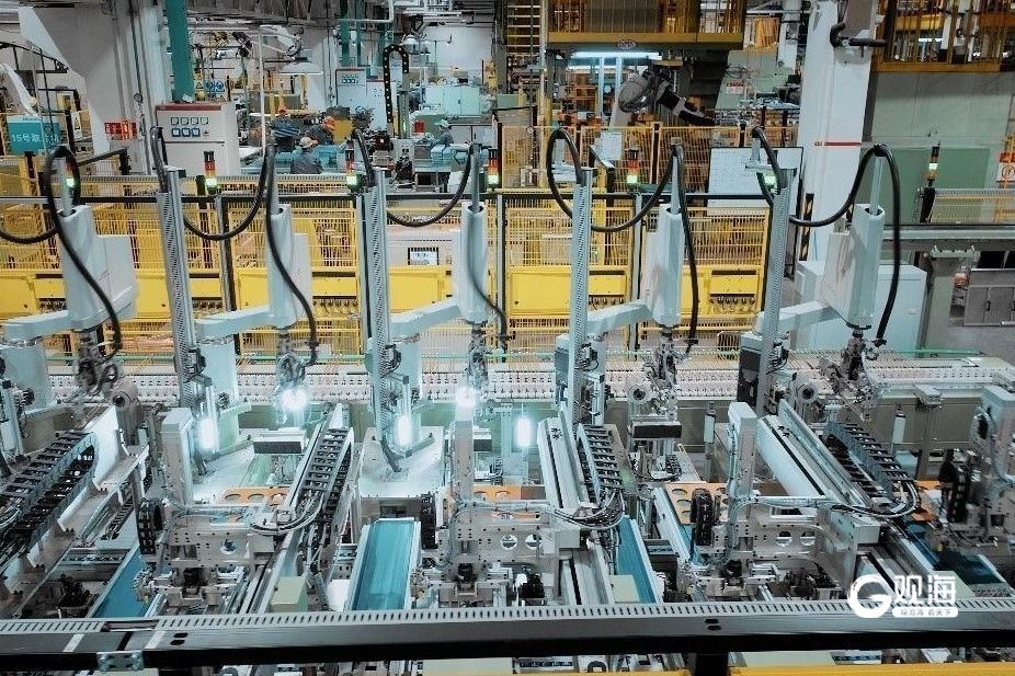 海信日立中央空调灯塔工厂中的生产线。