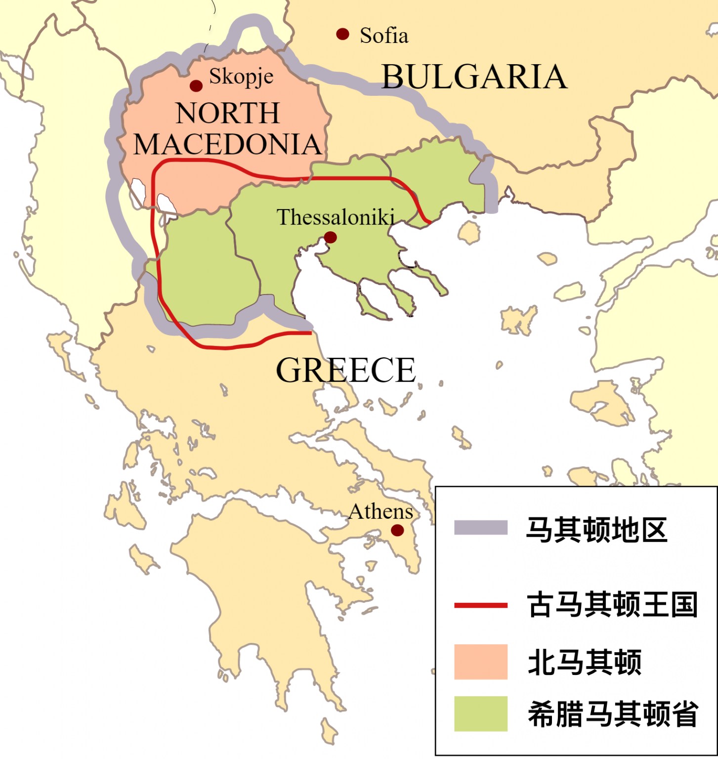 古典时期的正统马其顿但历史上马其顿这个地名,所涵盖的并不只是这个国家这块地方。从地理上来说,历史上的马其顿地区大概有6.7万平方公里,跨越现在希腊、北马其顿、保加利亚、阿尔巴尼亚等六个国家。其中,单单希腊北部的马其顿省,面积就有3.4万平方公里,人口超过230多万,比整个北马其顿共和国还要大得多。