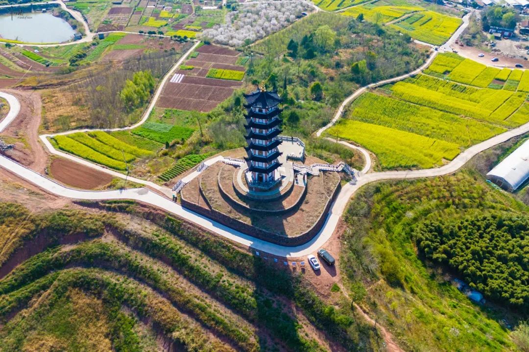 阳春三月,嵊州的崇仁古镇迎来了繁花肆意绽放和相互交织的时节,而我对这里赵马村亭山的油菜花田早就略有耳闻,就特意过来打了个卡。无奈的是等抵达目的地,本来能直达山顶曜文塔前的近道却被人用几棵竹子拦得死死的,如果不想去村子里绕远路上山的话,那么便只能选择弃车徒步。因为我过来这天的气温有30多度,稍微动动就大汗淋漓,自然就只用无人机“代步”,航拍几圈算是到此一游过喽。