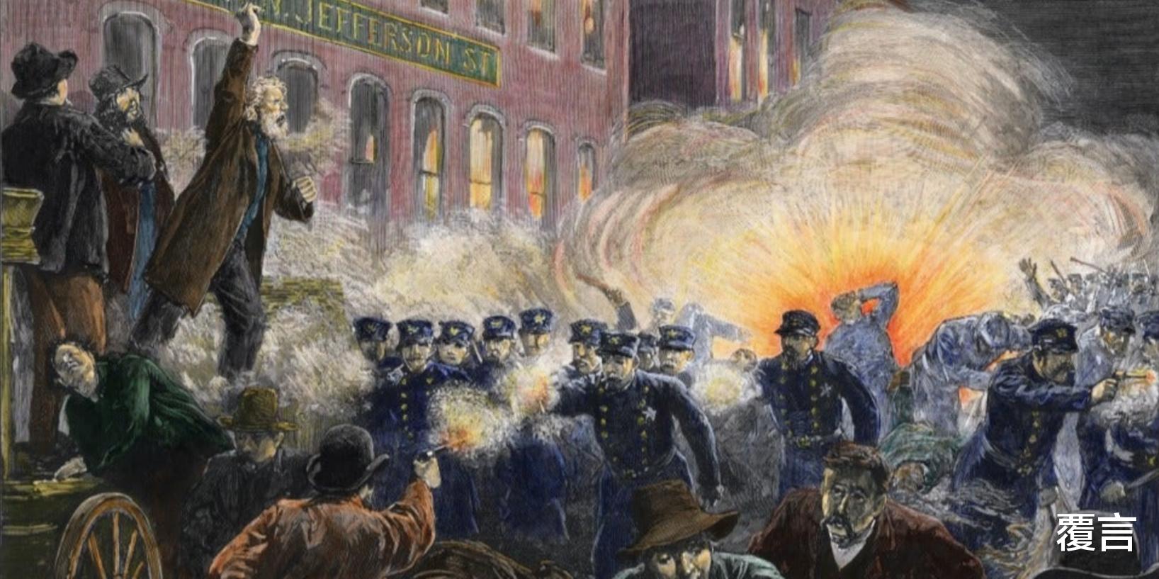 不过,正当工人们准备散场的时候,警察又来了,用命令的语气让工人离开。然后,有人朝警察扔了一个自制炸弹,瞬间就引发了警察与工人的冲突。