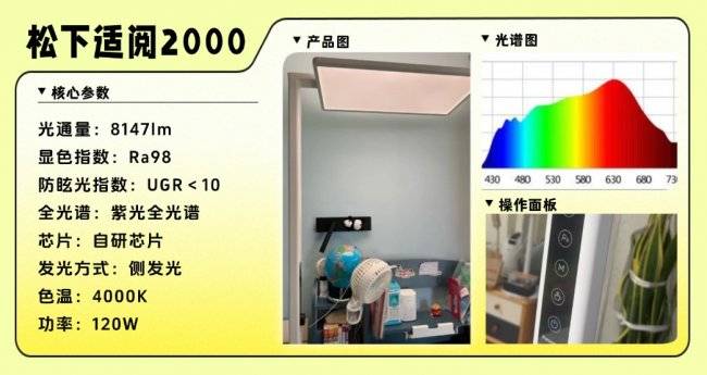 护眼大路灯第六名:松下适阅2000;显色指数维持在Ra98左右,色彩还原表现可靠。