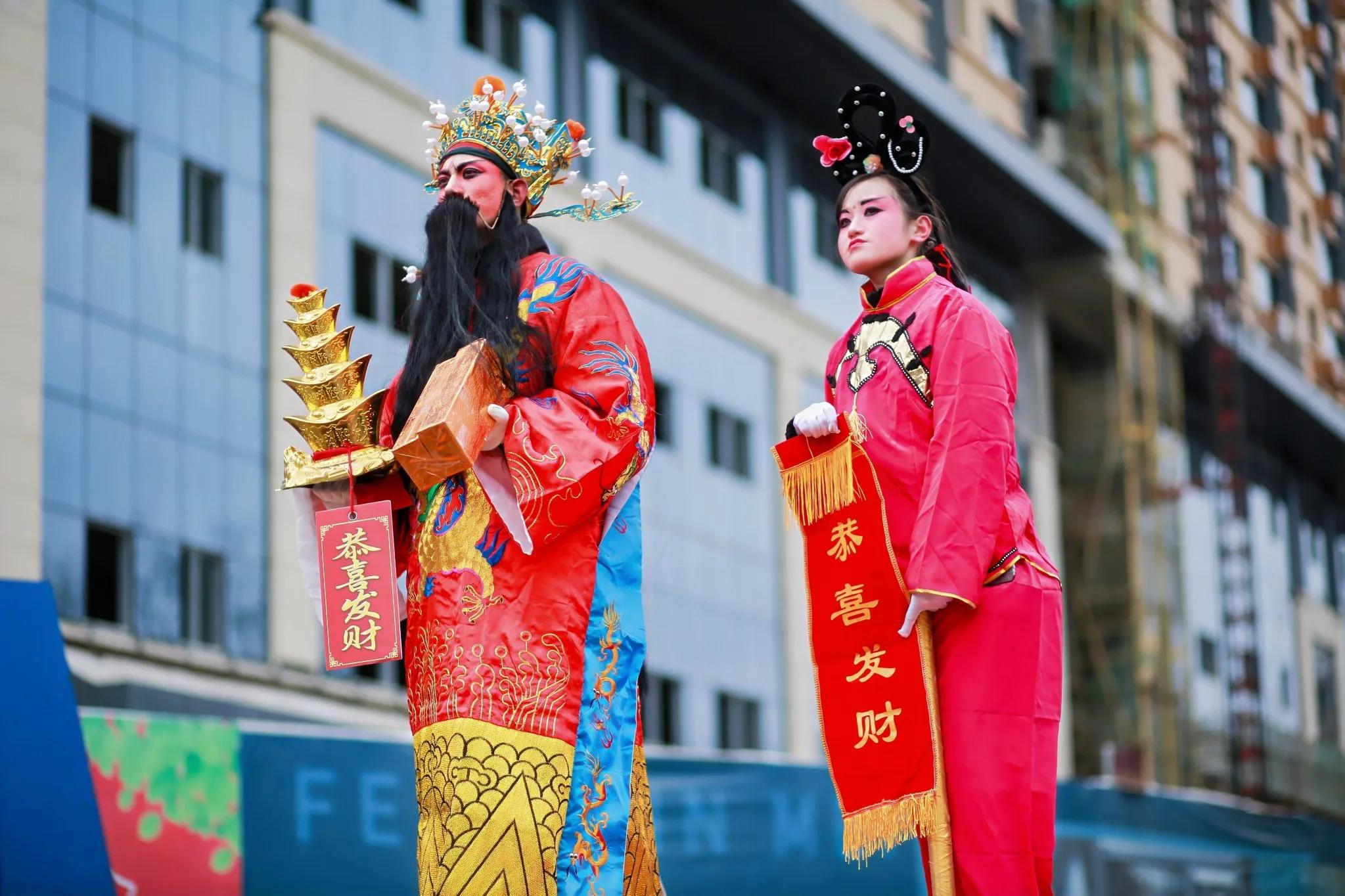活动当日,社火游演现场热闹非凡。各镇社火表演方阵各具特色,精彩纷呈。教育局旗林方阵彩旗飘扬,展现出全区人民共谋发展的壮志豪情和凤翔教育人的坚定信念;文旅局彩车以凤凰、坐虎、飞机等元素,结合凤香型白酒、凤翔苹果等特色产业,展示凤翔独特魅力并送去祝福。