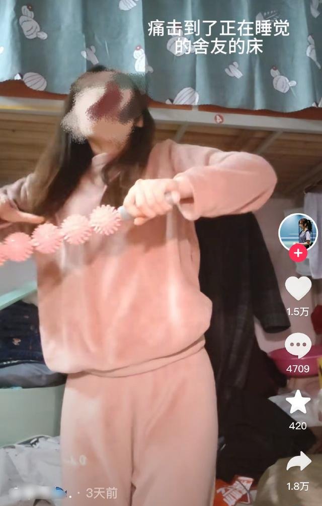 这位女生在凌晨1点50分,拿着健身用的狼牙棒在宿舍里挥舞,假装自己在练习羽毛球挥拍。按理说,这种行为乍一看并不是什么大问题,说不定还能博得几句“活泼可爱”的夸赞,可惜她选错了时间和地点。深夜时分,室友已经拉上床帘休息,宿舍也该是一片安静,她却挥舞着狼牙棒,敲击床铺发出噪音,甚至多次“不小心”砸到室友的床。更令人无语的是,她不仅没有意识到自己的行为问题,还在镜头前故作可爱,摆出一副无辜表情。视频上传网络后,立刻引发了数万网友的围观和嘲讽:“别把没素质当成可爱!”