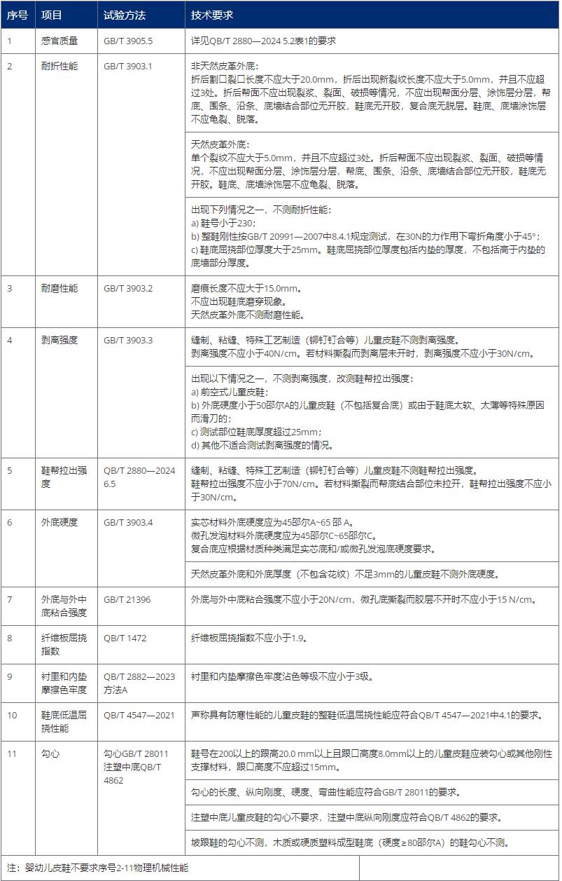2025年7月1日后生产的儿童皮鞋产品需同时满足:产品标准QB/T 2880—2024和强制性标准GB 30585—2024要求,确保产品合规。