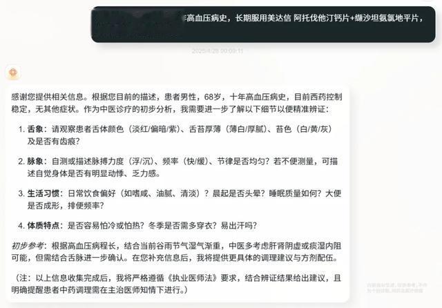 任度·素问中医大模型遵循“一人一方”原则,可结合患者体质、病史生成定制化方案。