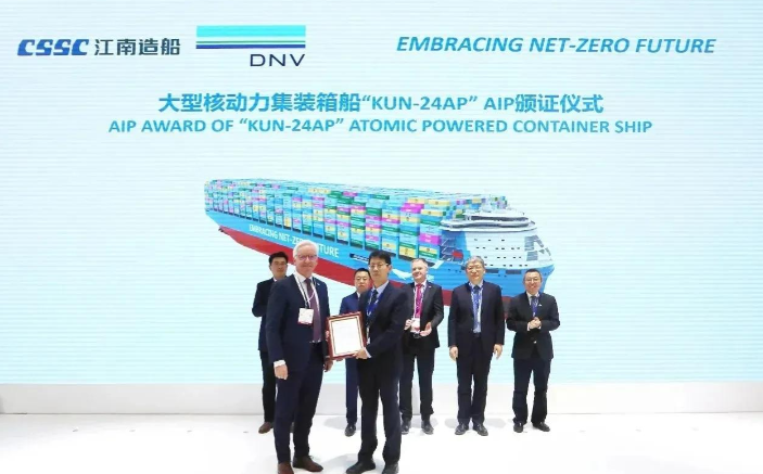 2023年12月,中国船舶集团有限公司旗下江南造船(集团)有限责任公司正式发布全球首型、世界最大的24000TEU级核动力集装箱船船型设计。