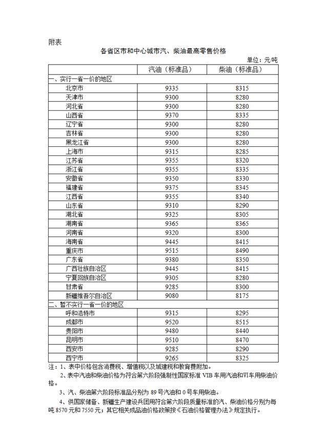 黑龙江省 92号汽油限价 7.52 95号汽油限价 8.03 0号柴油售价 7。