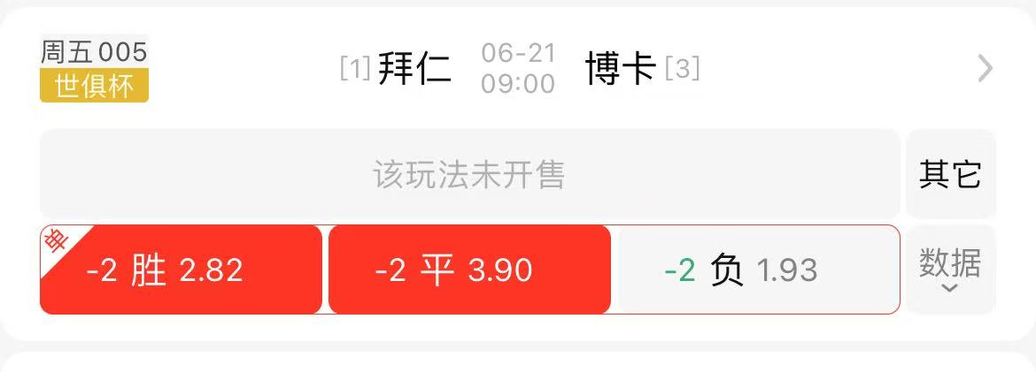 虽然首轮拜仁10-0大胜,但考虑到奥克兰城毕竟不是啥强队,而博卡青年又2-2逼平了实力不弱的本菲卡。所以本场1.5的数据让步已经是非常深的一个指数了。毕竟本菲卡这样的球队也是曾经在欧冠战场上跟拜仁一较高下过的。