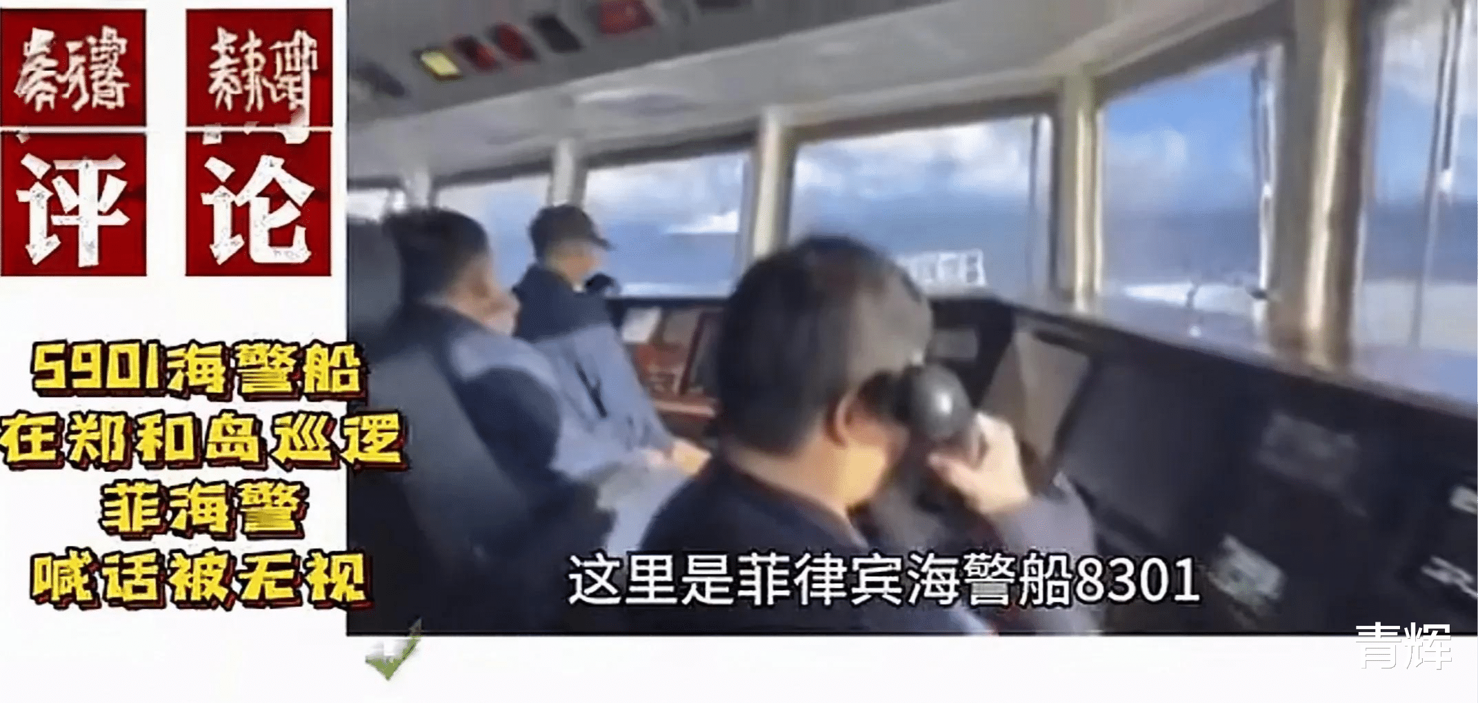 从国际互联网上传出的视频中能够看到,当时菲律宾海警8301船通过无线电向5901喊话,声称5901已经侵犯了自己所谓的专属区域,要马上离开,并且向菲律宾方面告知此次行动的意图是什么!