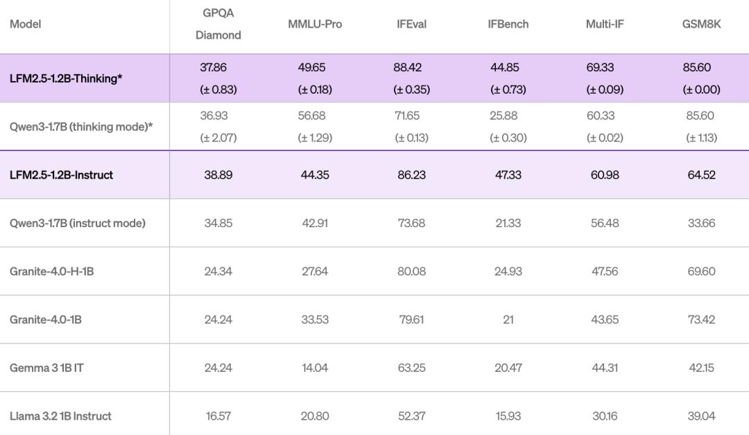 Liquid AI 声称,该模型专门为简洁推理而训练;在生成最终答案前,会先生成内部思考轨迹;在端侧级别的低延迟条件下,实现系统化的问题求解;在工具使用、数学推理和指令遵循方面表现尤为出色。