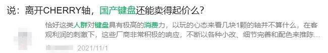 我查资料的时候发现2021年都还有人在讨论“国产键盘离开Cherry还能过吗”的话题。
