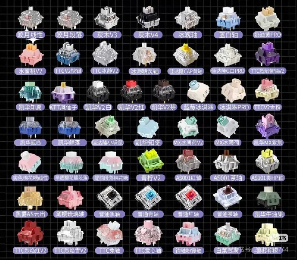 金粉、知夏、G黄Pro、Y3、Jude、水蜜桃、极地狐……光听名字你都不知道这些轴体的区别是什么。