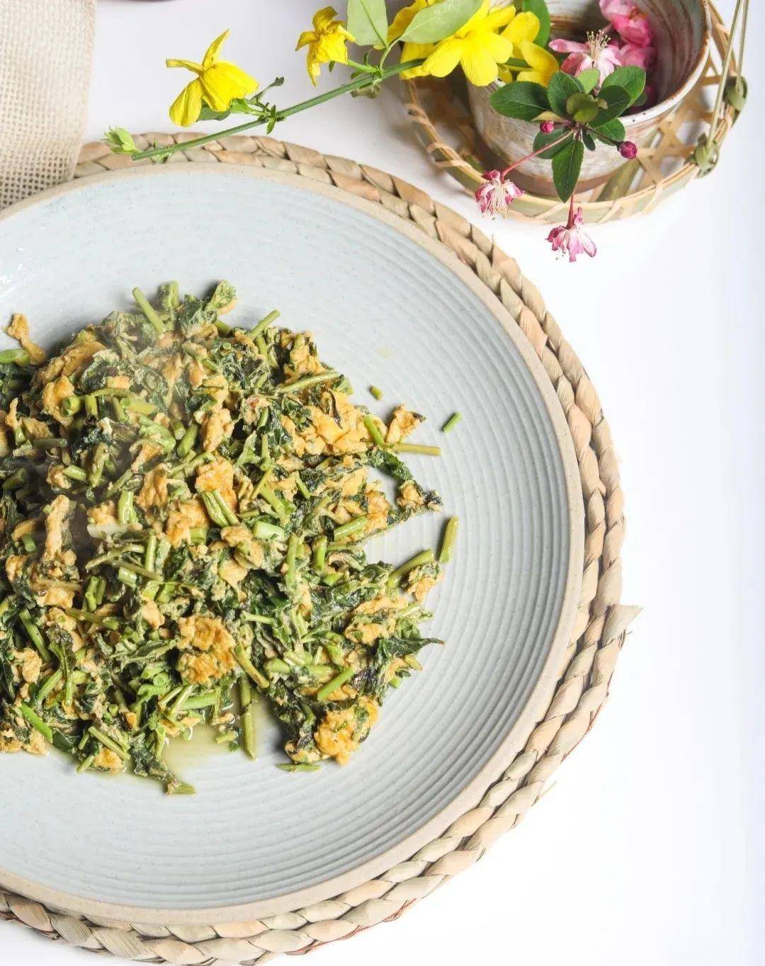 香椿是蛋白质的最佳搭配。一盘香椿炒鸡蛋,葱香十足,嫩黄。光看颜色就够下饭了!