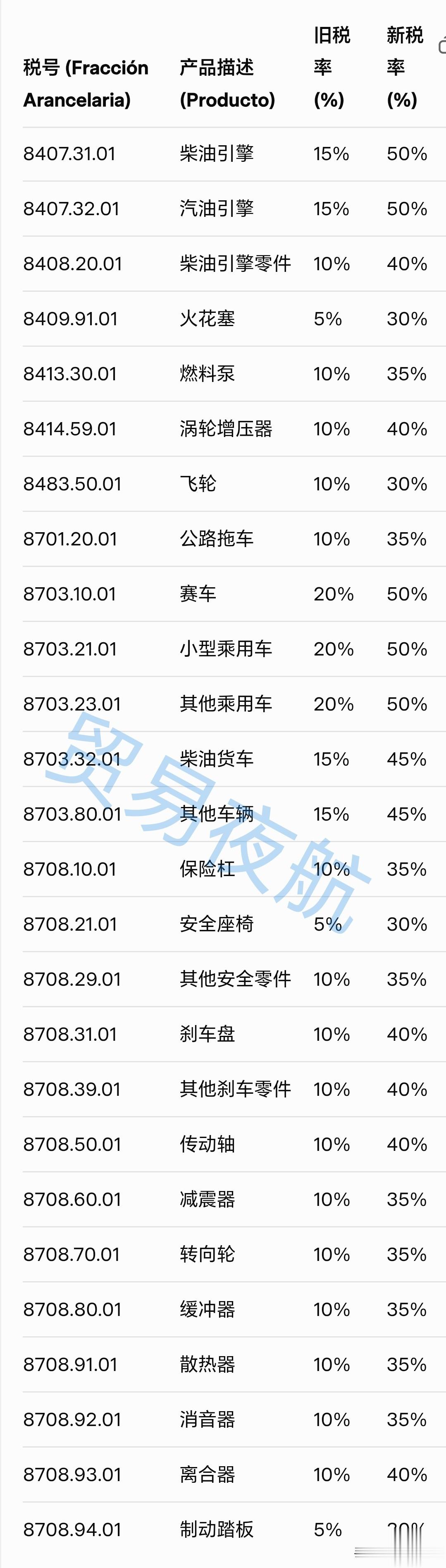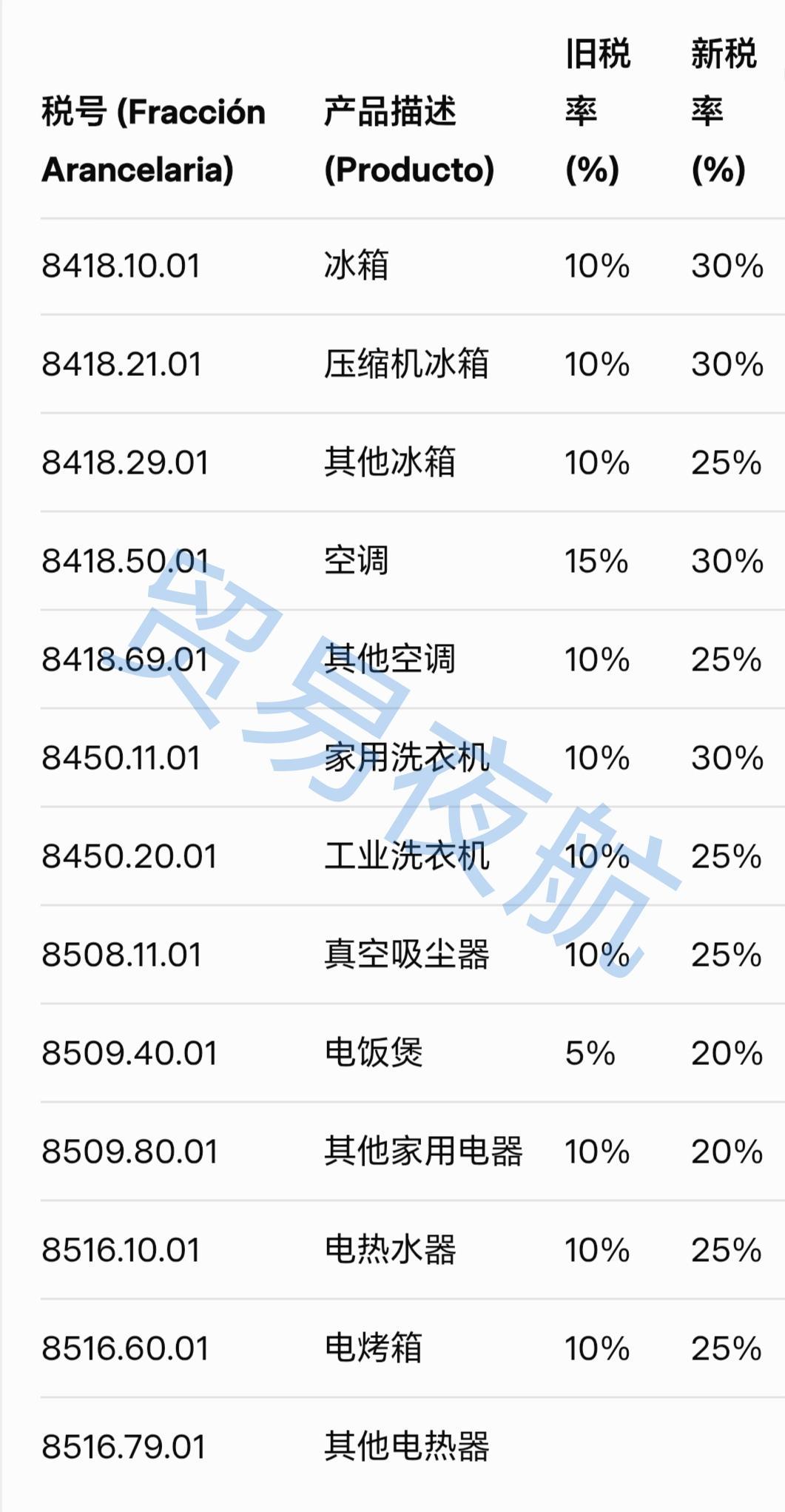 ⚠️ 针对国家:中国、韩国、印度、越南、泰国、巴西、印度尼西亚、尼加拉瓜、阿联酋和南非等。欧盟、美国、加拿大等与墨西哥有自由贸易协定(TLC)的国家不受影响。