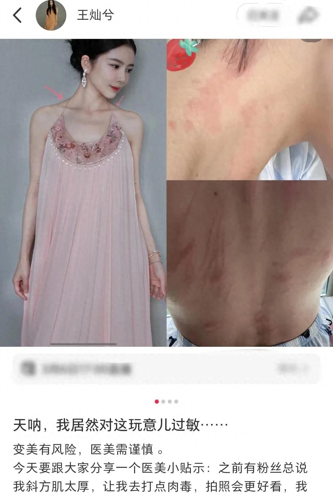 关键是,王灿找的还是正规医美机构,可见,光找正规机构也不够啊!关键是她没跟医生说自己有过敏体质,也没做皮试,这步就走错了!打完针后,她还以为没事了,回家后才发现不对劲,胸口闷,头晕,全身起疙瘩,后背还痒得不行,这画面,想想都觉得瘆得慌! 这可不是普通的过敏,那照片上,脖子和后背一片通红,全是抓痕,比蚊子包大多了!真的是太吓人了!你看她那小作文,写的满满都是委屈和后怕啊!