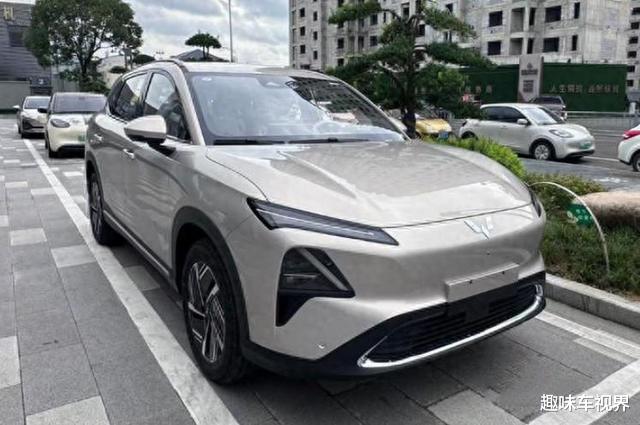 车身侧面,线条流畅且富有力量感。上扬的腰线从前大灯贯穿至车尾,营造出一种俯冲的姿态,赋予车辆强烈的动感。车身尺寸方面,作为紧凑型 SUV,其长宽高预计与五菱星光 S EV 相近,能够为车内提供较为宽敞的空间。此外,车顶配备的行李架,增加了车辆的实用性,满足消费者对于户外出行的需求。车尾部分,同样采用了贯穿式的尾灯设计,与前脸大灯组相呼应。后保险杠下方的黑色护板以及双边共双出的排气装饰,为车尾增添了一份运动气息。