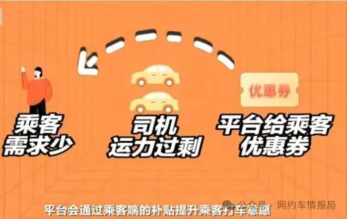 情形1:当乘客的打车需求少,但是接单司机多的时候,平台就会给乘客发优惠券鼓励乘客打车,来增加司机的接单量。