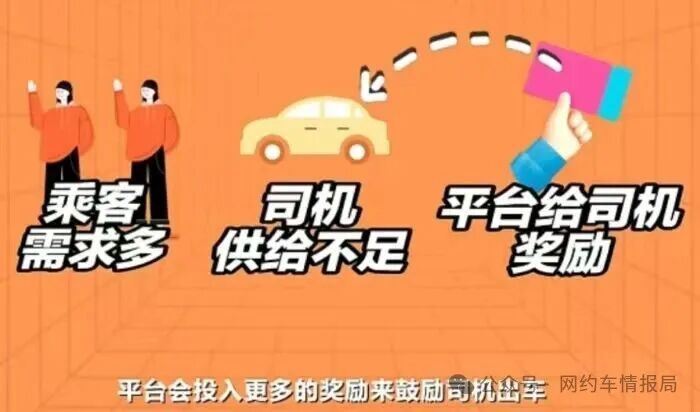 情形2:当打车的乘客较多,但是出车接单的司机较少的时候,这个时候平台就会给司机发补贴,来鼓励司机上线出车接单。