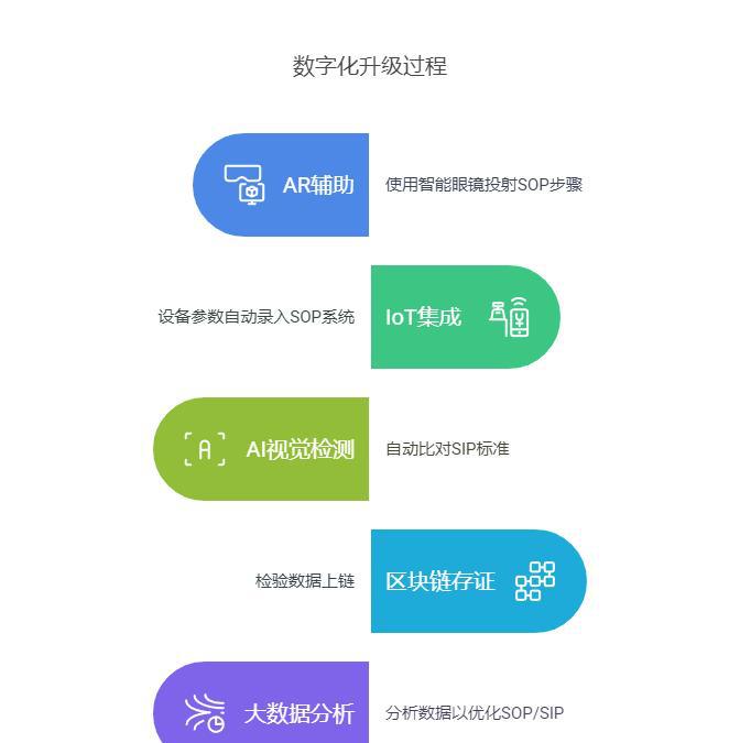 在数字化转型的时代,技术的进步为SOP和SIP的协同创新提供了新的机会。将先进的数字化工具和技术引入到标准化管理中,可以实现流程执行的电子化,进一步提高工作效率。例如,利用AR(增强现实)技术,可以帮助操作人员更好地理解SOP的具体要求。同时,IoT(物联网)技术能够实现设备之间的智能互联,自动录入生产数据,从而减少人为干预对数据准确性的影响。此外,AI(人工智能)与视觉检测技术的结合使得产品检验变得更加精准,能够提高质量控制的及时性与准确性,为企业带来更大的竞争优势。