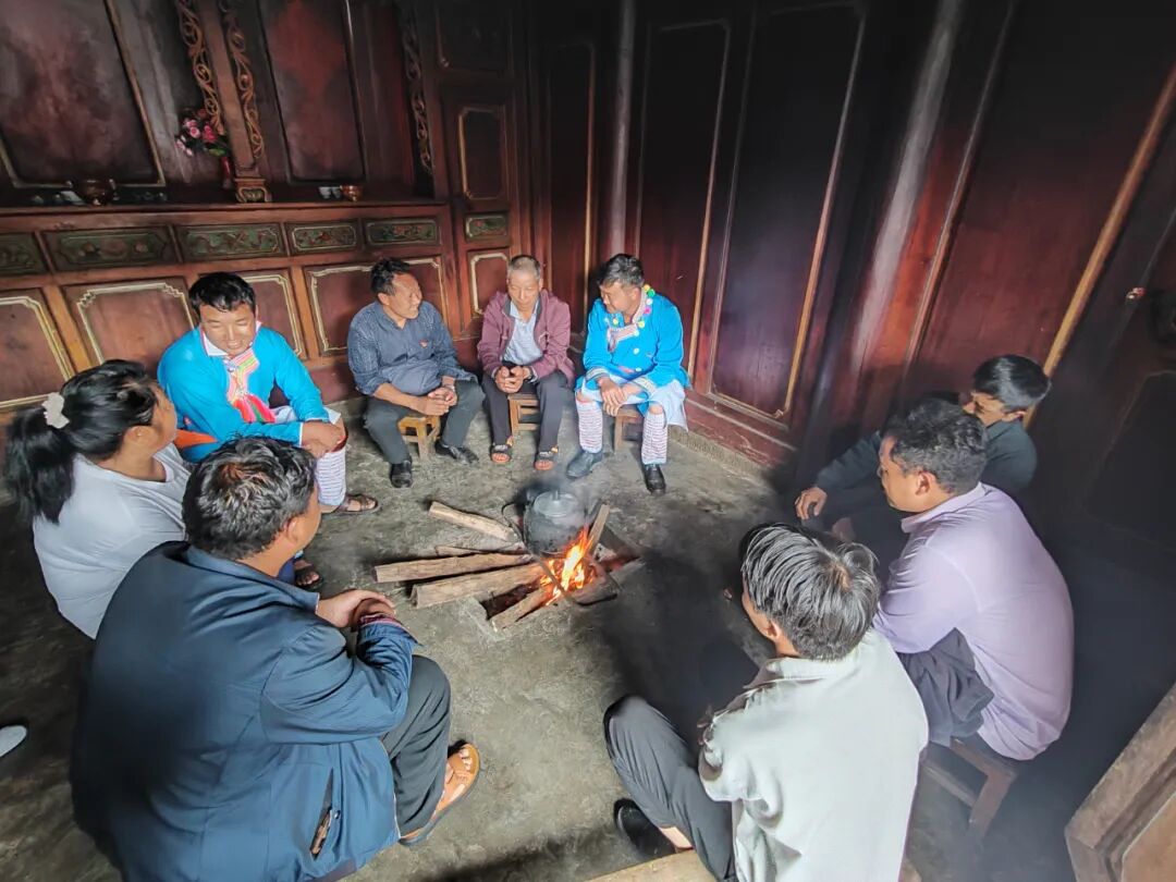 腾冲市猴桥镇猴桥村傈僳族村民围坐在火塘边共话孝老爱亲好家风。