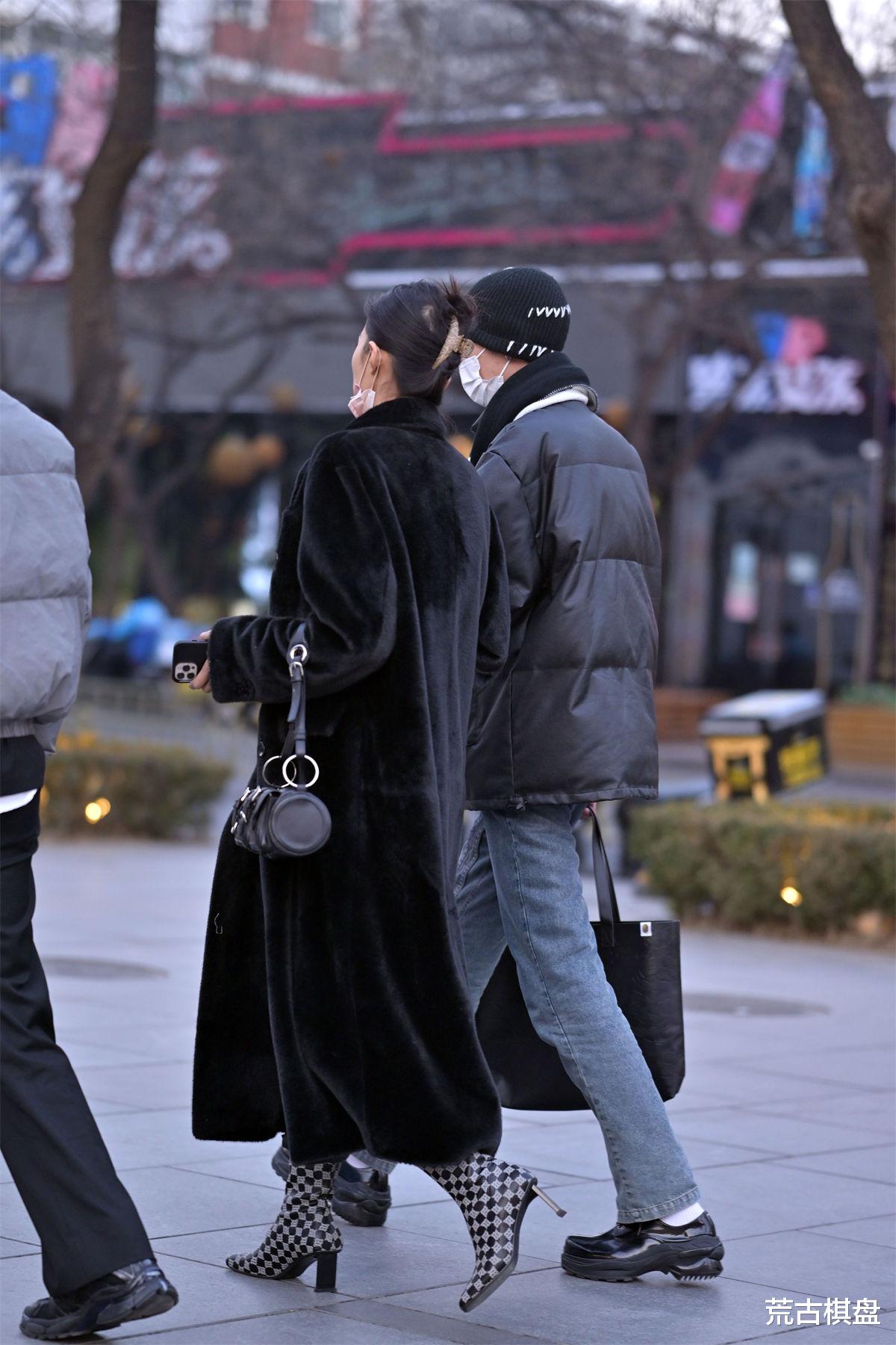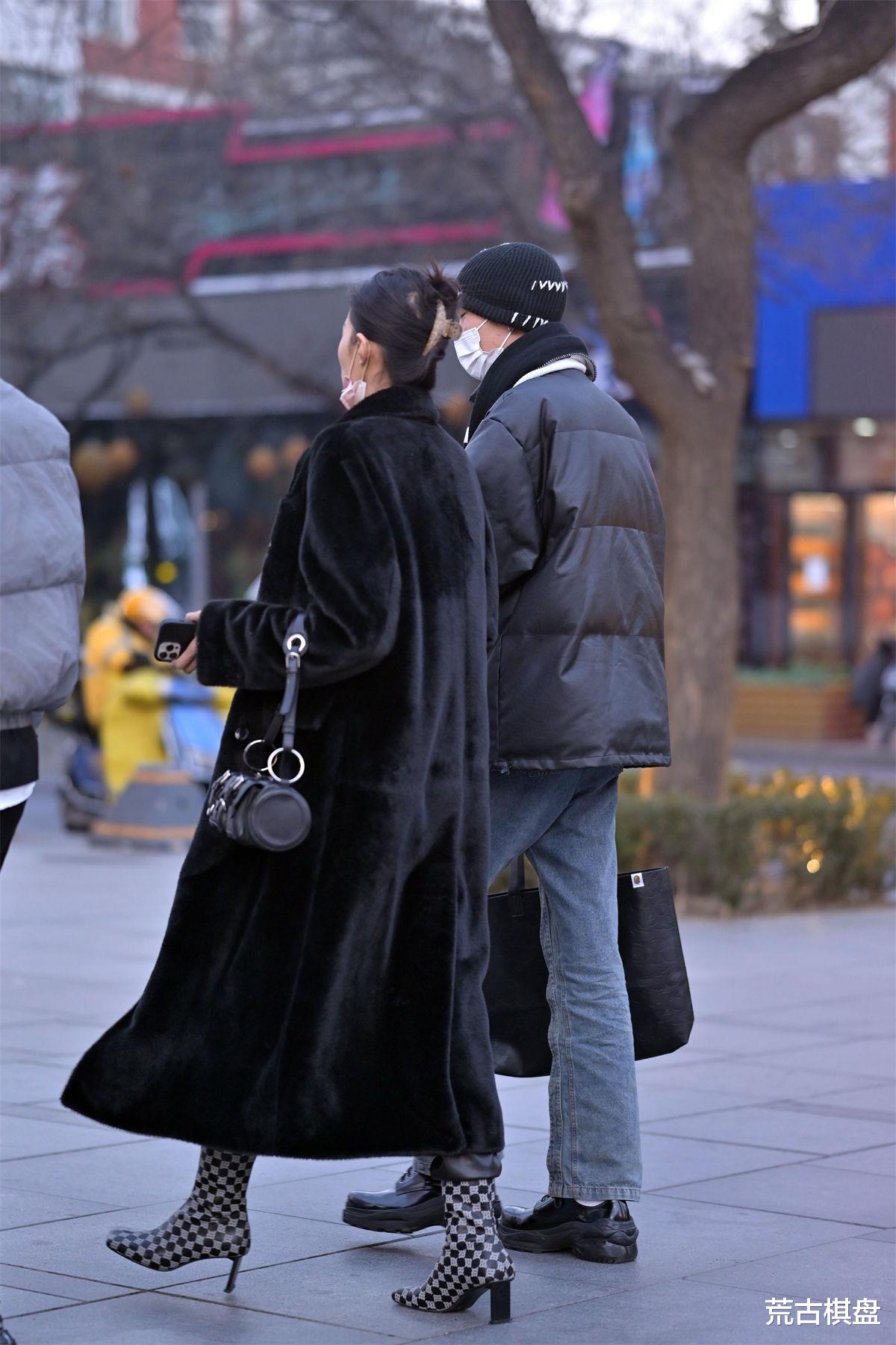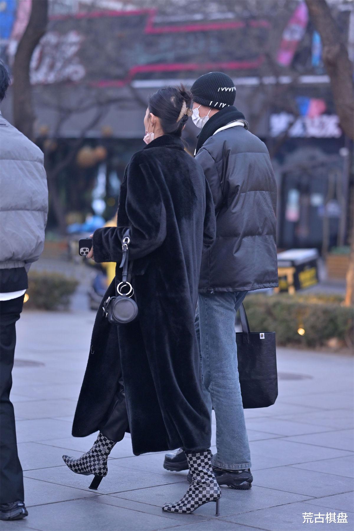 而当黑色的裘皮大衣缓缓披上肩头,整个人的气场瞬间被提升到了另一个高度。裘皮的柔软与温暖,仿佛冬日里最贴心的拥抱,让人在寒风中也能感受到一份难得的安逸与舒适。黑色的基调,不仅显瘦效果一流,还与短靴和皮裤形成了完美的色彩呼应,营造出一种低调而奢华的氛围。大衣的剪裁简洁大方,无论是翻领的设计还是腰带的点缀,都恰到好处地展现了穿着者的品味与格调。走在街头巷尾,这样一件大衣足以让你成为众人瞩目的焦点。