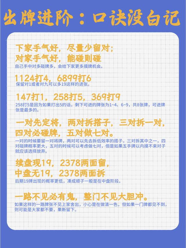 麻将小抄:打麻将赶紧记下来吧!