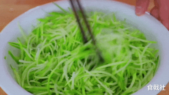 2再准备一个萝卜,去掉头和尾,洗干净后放入盆中擦成细丝,再加入少许的食盐,搅拌均匀,这样可以去除萝卜里面的辛辣味,拌匀后腌制五分钟。